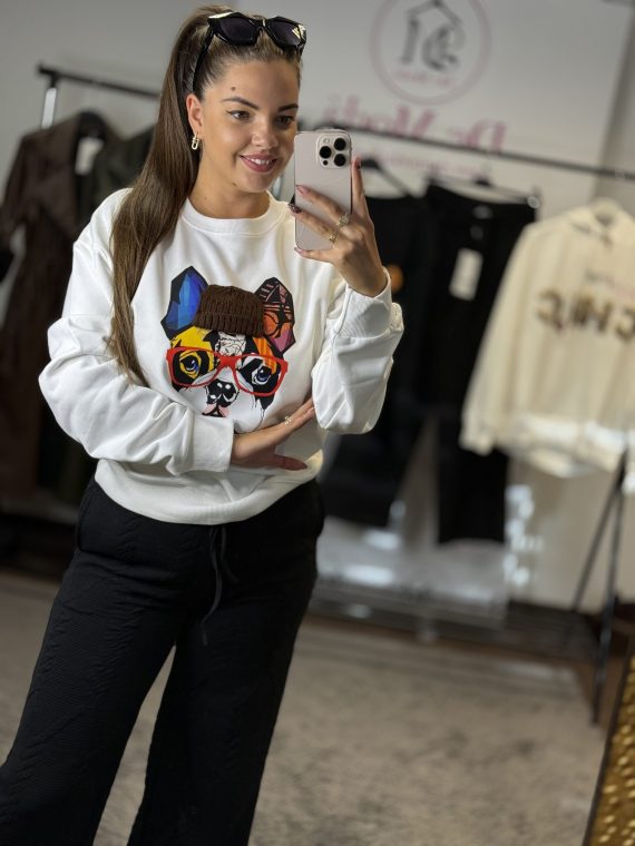 Extravagáns,kutyás pulóver-fehér