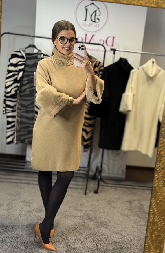 Bundás ujjú,garbós ruha-világosabb barna